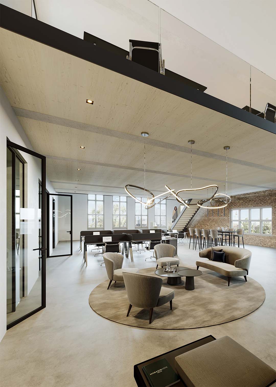 Die MAGAZINHÖFE verbinden historische Baukultur mit moderner, nachhaltiger Arbeitswelt: CO2-arme Sanierung nach LEED-Gold-Standard, flexible Büros mit viel Charme, grüne Innenhöfe, Gastronomie, E‑Mobilität und sehr gute ÖPNV-Anbindung – ein zukunftsfähiger Standort mit hoher Aufenthaltsqualität.